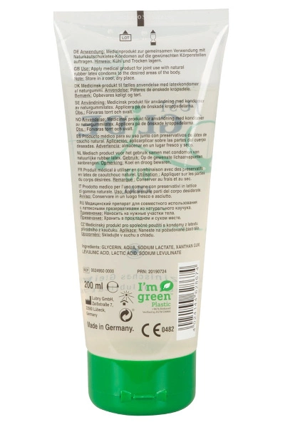 Op water gebaseerd, natuurlijk organisch glijmiddel – speciaal ontworpen voor plezierig anaal plezier. Het zit in een ecologisch verantwoorde buis die is gemaakt van de hernieuwbare grondstof suikerriet dat tijdens de groei op een milieuvriendelijke manier CO2 bindt. De smaak- en geurloze formule is 100% veganistisch en veilig te gebruiken met latex condooms. Het glijmiddel is vrij van olie en vet en kan dus zonder vlekken worden afgewassen.