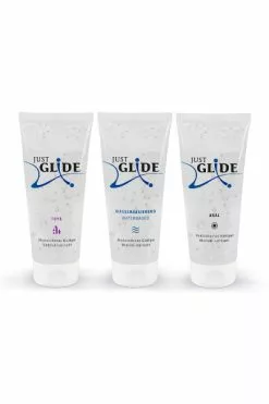 3x 200 ml,…..Just Glide Water, Just Glide Anal, Just Glide aarbeien smaak….